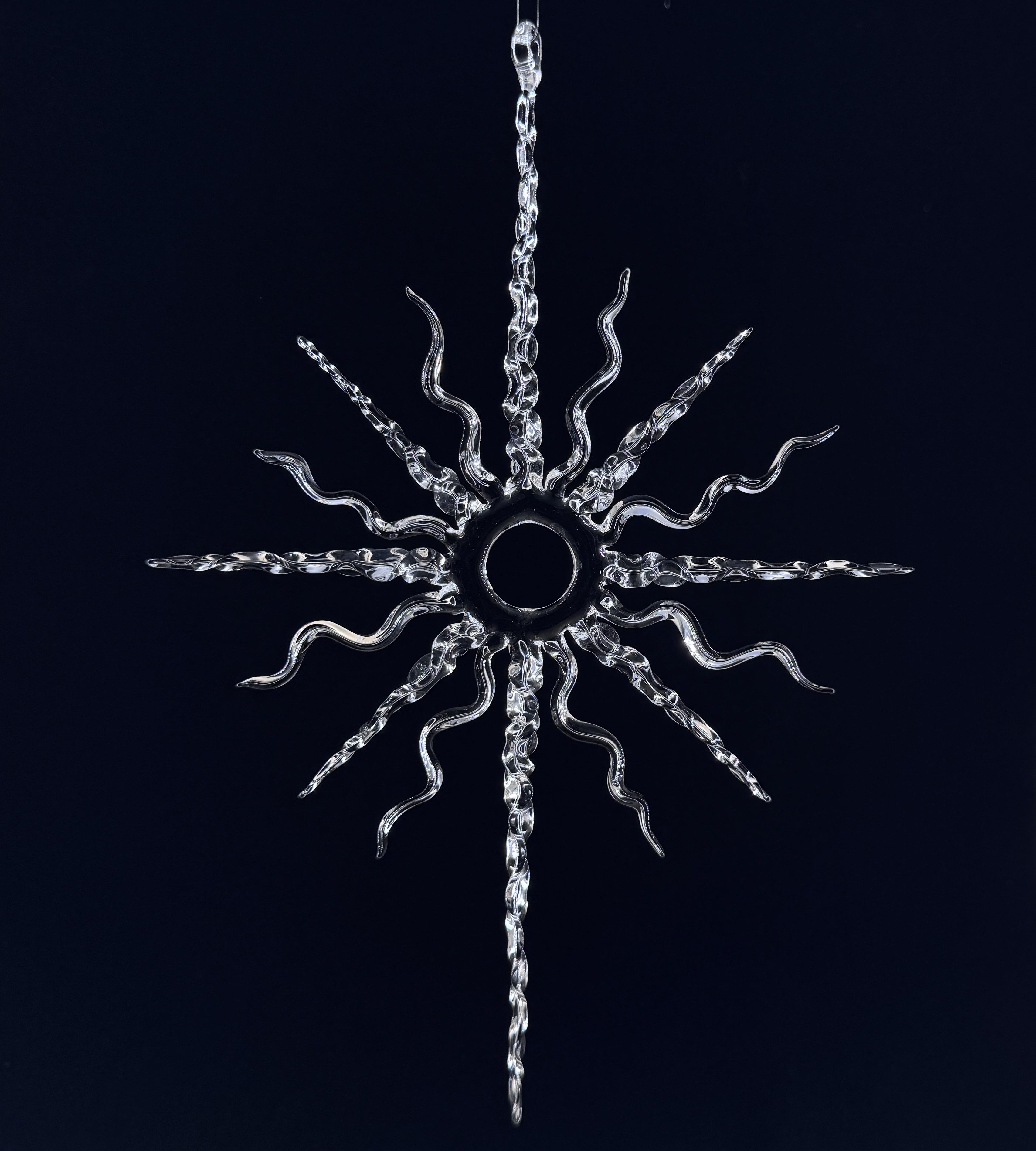 I also work internationally as an artist in performance, video, installation, and more. Many hand made artworks in my booth are components of large European installations or performances. I try to make something for everyone and you will find hand cut one-of-a-kind copper tree toppers, gifts that speak to the soul like my hand hammered gold star ornaments, blown glass pig and bird ornaments, and glass icicles from tiny earrings to massive icicles for your windows (and Christmas tree size too!) Many ornaments come with their history or story on the box.